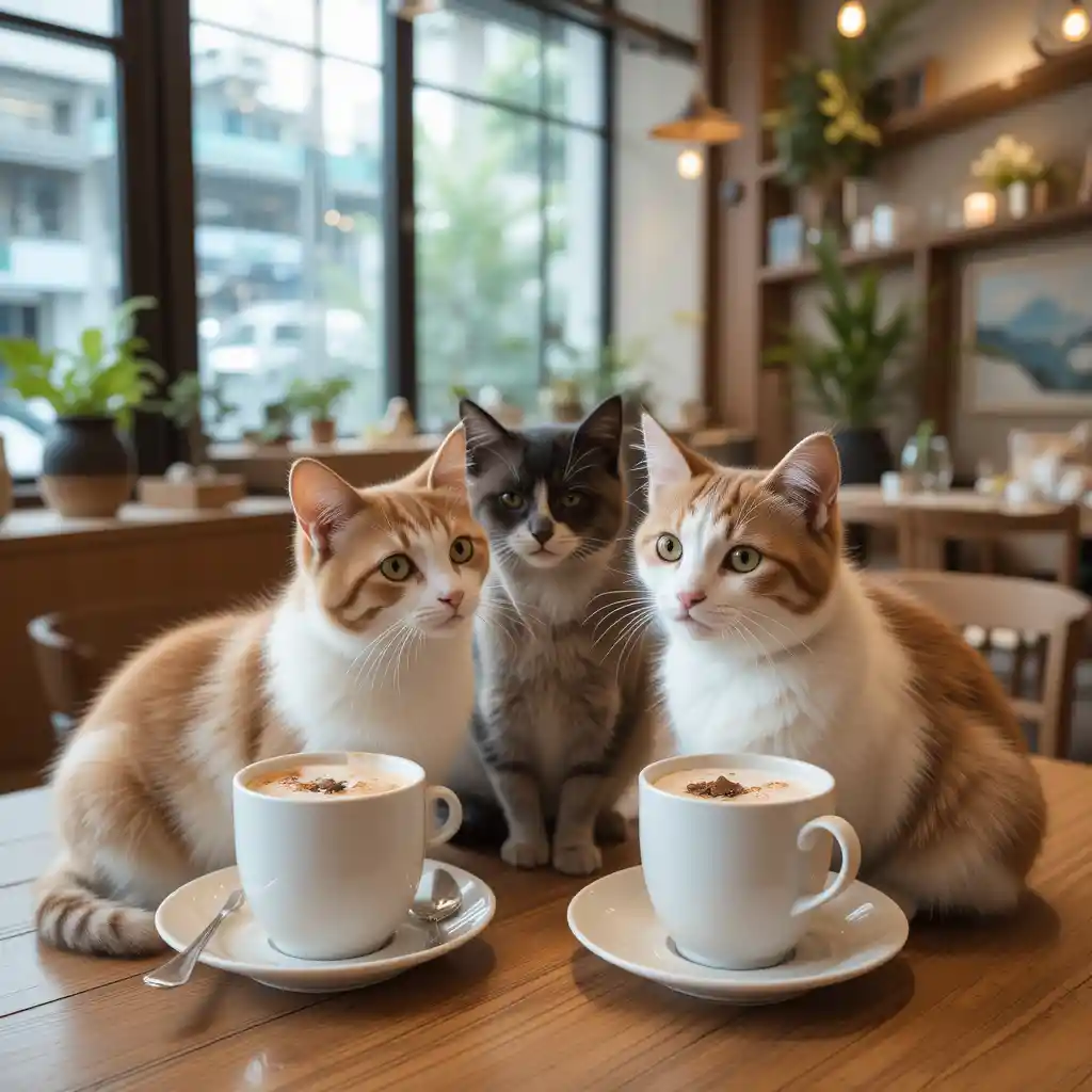 • A serene cat café featuring friendly, adoptable felines.