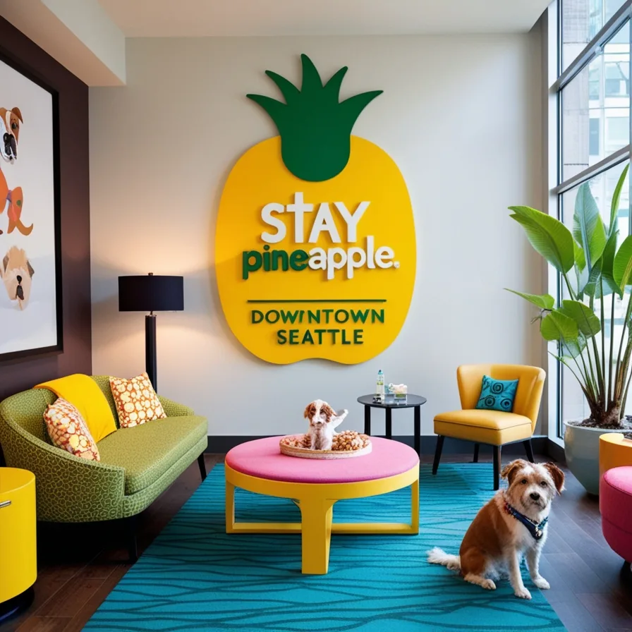 A blend of modern artistry and Seattle soul — a stylish choice for pet-loving travelers. 🖼️🐕💙