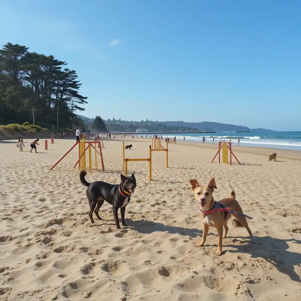 Many beaches offer dog wash stations, fresh water fountains, shaded areas, and agility zones for extra fun!