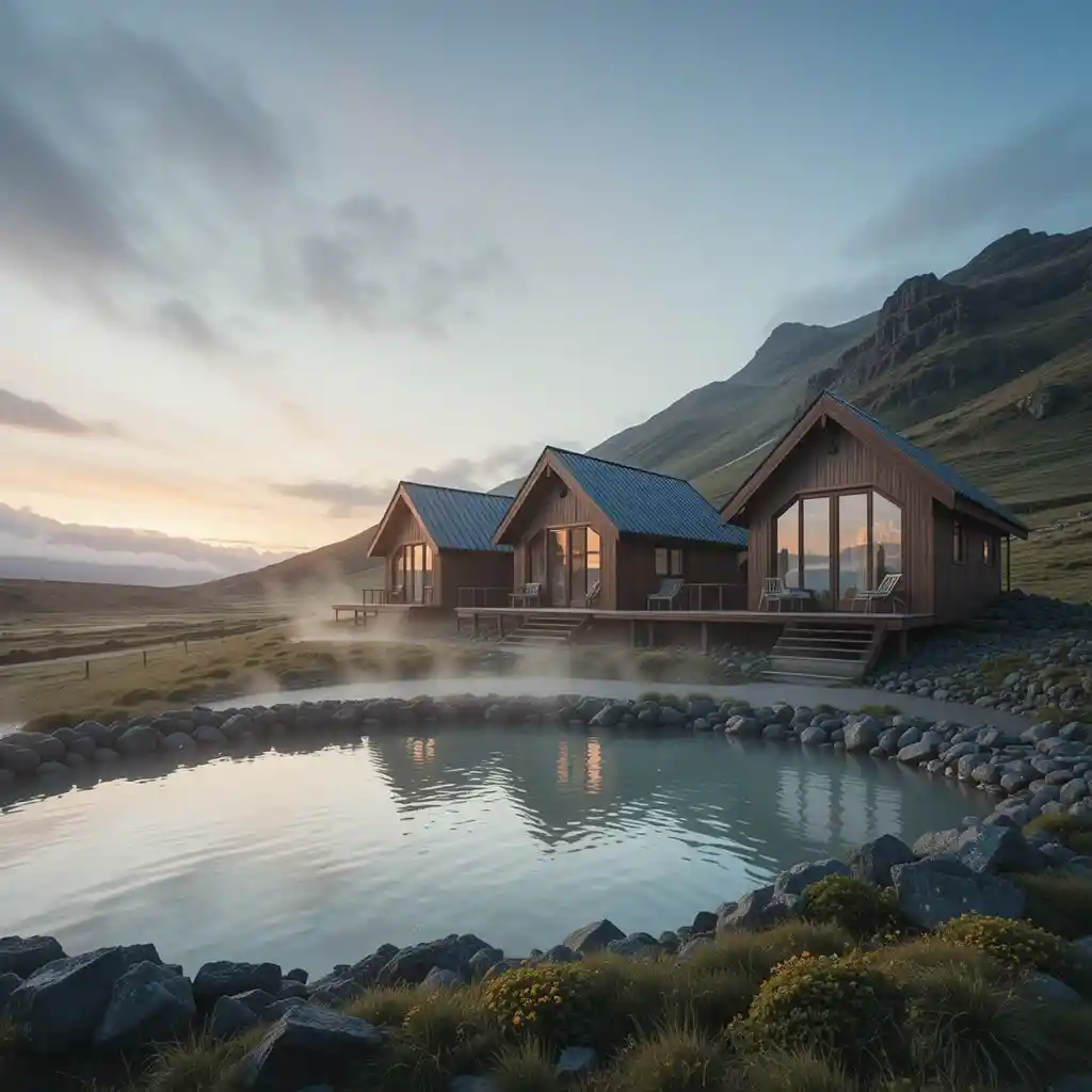 Stay in geothermal-powered cabins at EcoPaw Lodge. Their pet-friendly hot springs and Northern Lights tours make it a unique destination for sustainable travel.